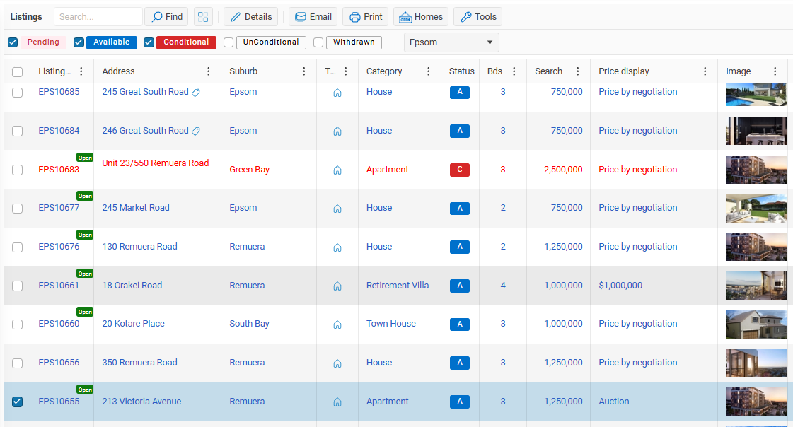 Click on the Open Homes button to enter bulk or multiple Open Home times (Residential users only).