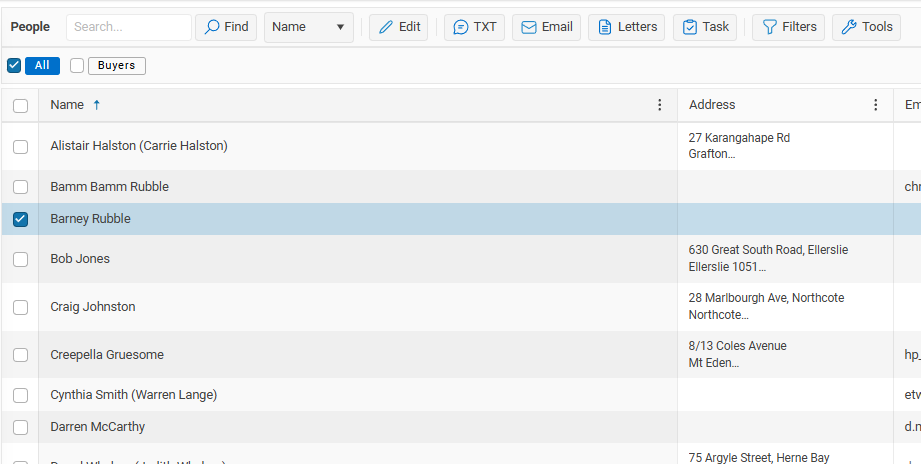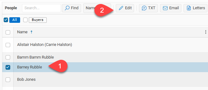 The fastest way to find someone in your database. is to enter their name in the Search box and press enter key or click on the Find button